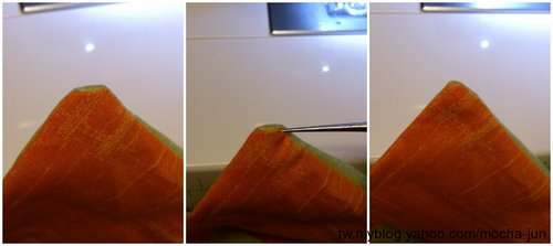 tips:用錐子輕輕勾出布邊 縫出來的壓線才不會吃布喔!