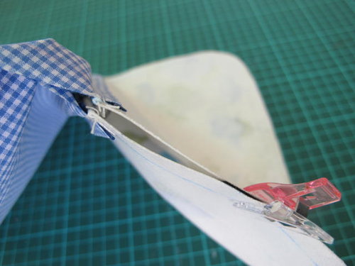 用夾子固定一下 , 準備車縫 ( 現在我不用雙面膠先固定拉鍊ㄌ)