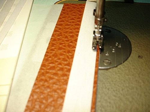 要車縫囉 ~ 因為兩面都是皮革表面 ~ 直接放在針板上是車不動的 ~ 所以我會在針板上先放一張薄紙 (這本英打字紙~用好幾年了~還用不完勒) ~ 再將布放上去 ~ 車縫時拿剛剛做的尺規放在壓腳下 ~ 就這麼車車車.... ~ 分享完成 ~ 您試試看 ~ 非常好用的方法 ~ 不需花費$$ ~ 製作時也不需搞得焦頭爛額(在這麼熱的天氣裡.